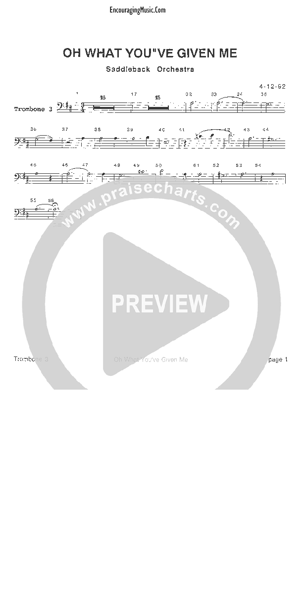 Download the Orchestration for Oh What You've Given Me by Rick Muchow, from the album Promises. This song was arranged by Encouraging Music in the key of D.