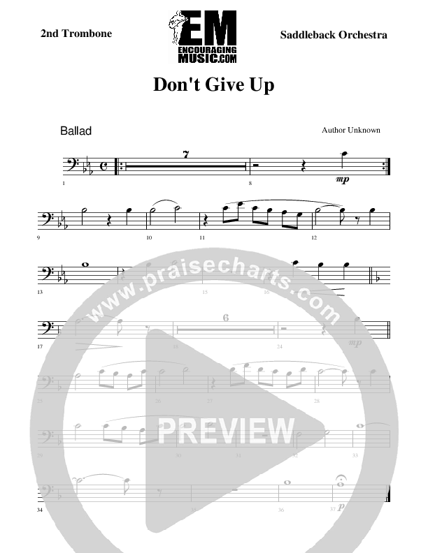 Download the Orchestration for Don't Give Up by Rick Muchow, from the album Healing Grace. This song was arranged by Encouraging Music in the key of Eb.