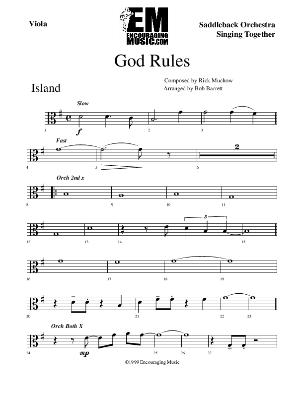 Download the Viola sheet music for God Rules by Rick Muchow, from the album All About Love. This song was arranged by Encouraging Music in the key of G.