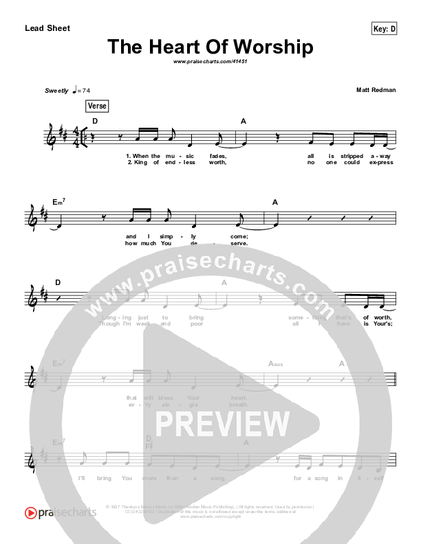 Download the sheet music for The Heart Of Worship (Simplified), from the album Simplified Worship. This song was arranged by PraiseCharts in the key of A, Ab, B, Bb, C, D, Db, E, Eb, F, G, Gb.