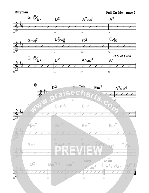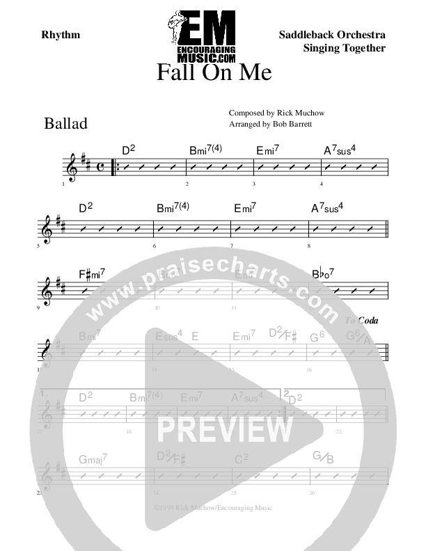 Download the Rhythm Chart for Fall On Me by Rick Muchow, from the album All About Love. This song was arranged by Encouraging Music in the key of D.