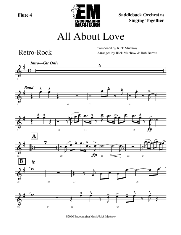 Download the Flute sheet music for All About Love by Rick Muchow, from the album All About Love. This song was arranged by Encouraging Music in the key of G.
