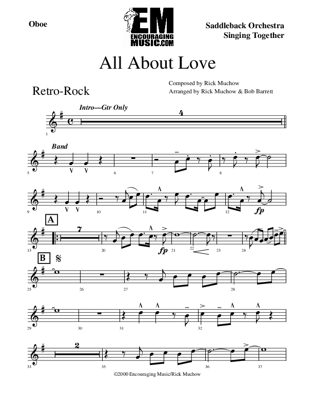Download the Oboe sheet music for All About Love by Rick Muchow, from the album All About Love. This song was arranged by Encouraging Music in the key of G.