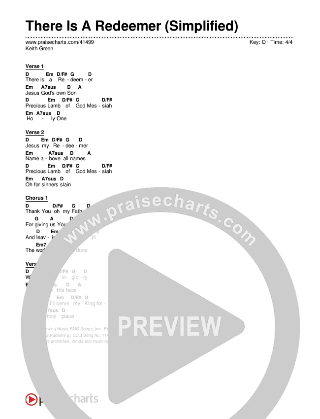 Download the PDF Chord Charts for There Is A Redeemer (Simplified), from the album Simplified Worship. This song was arranged by PraiseCharts in the key of A,Ab,B,Bb,C,D,Db,E,Eb,F,G,Gb.