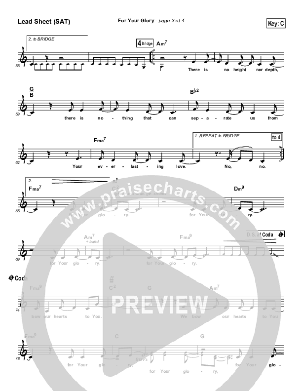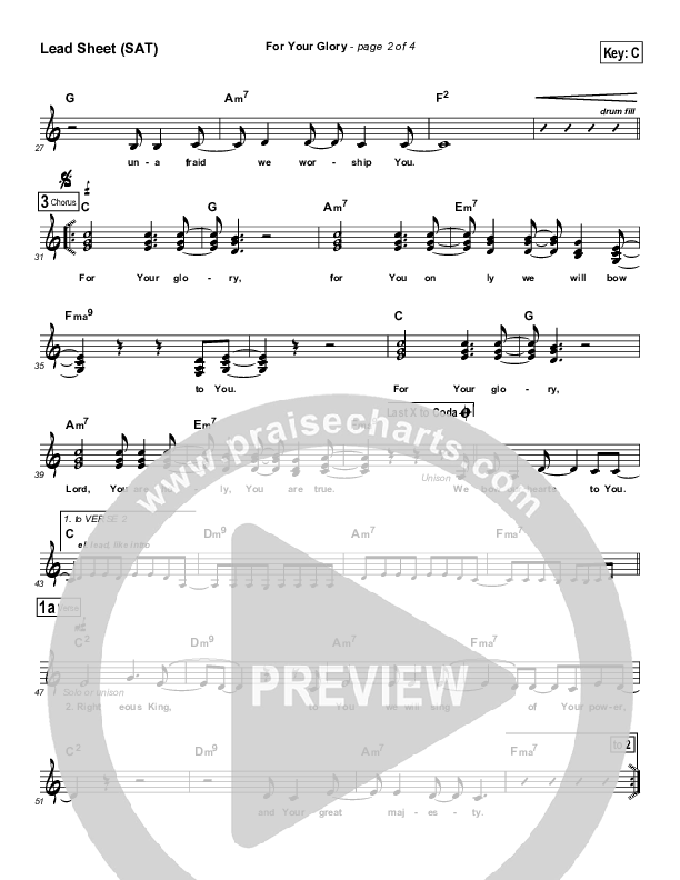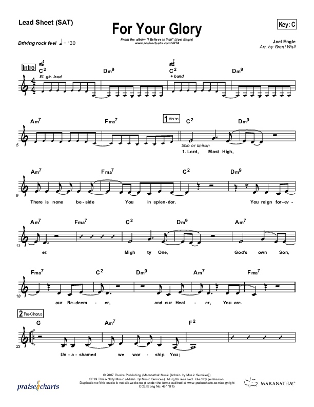 Download the sheet music for For Your Glory by Joel Engle, from the album I Believe In You. This song was arranged by Grant Wall in the key of C, D.