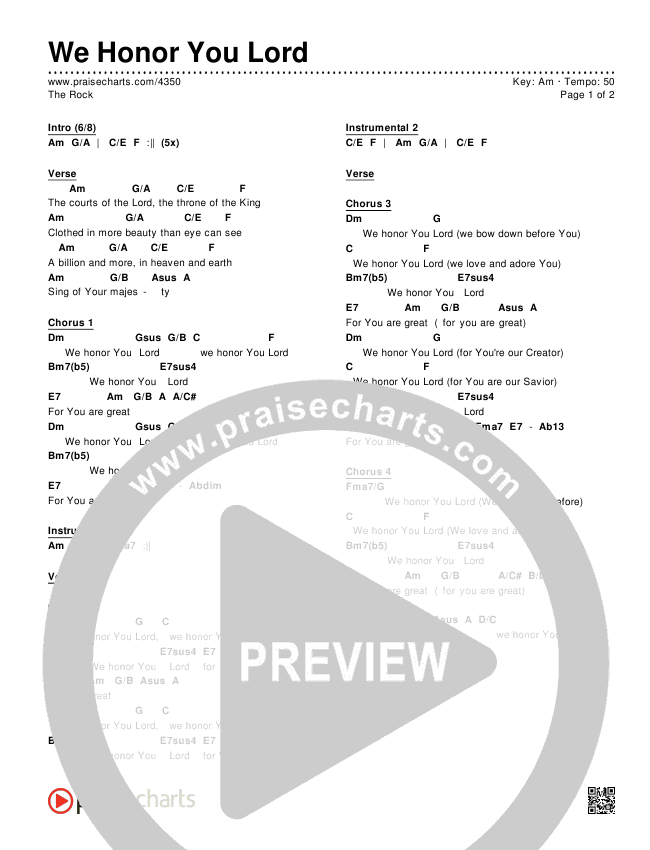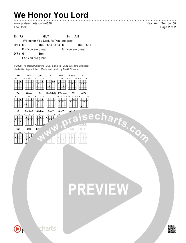Download the PDF Chord Charts for We Honor You Lord by The Rock Worship, from the album A Thankful People. This song was arranged by Jared Haschek in the key of Em, Fm.