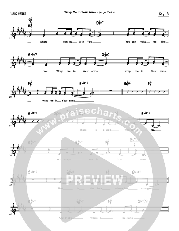 Download the sheet music for Wrap Me In Your Arms by Martha Munizzi, from the album Change The World. This song was arranged by Integrity Music in the key of B.