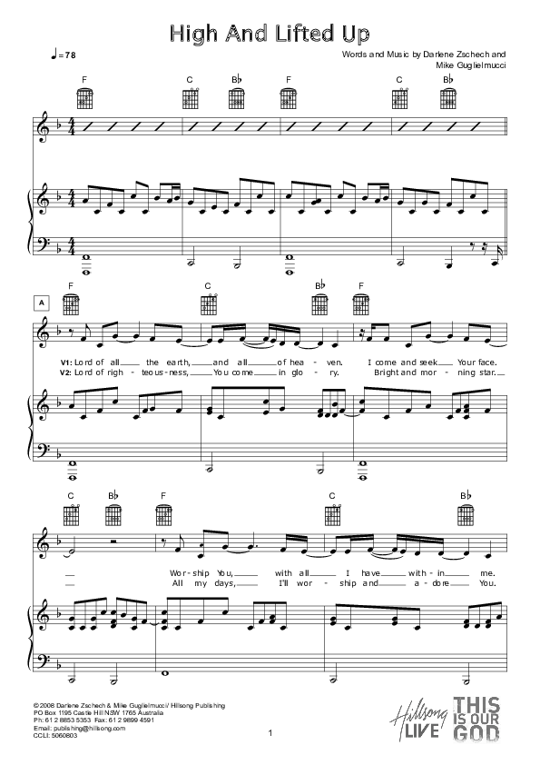 Download the Orchestration for High And Lifted Up (Instrumental) by Hillsong Worship, from the album This Is Our God. This song was arranged by Hillsong Music in the key of F.