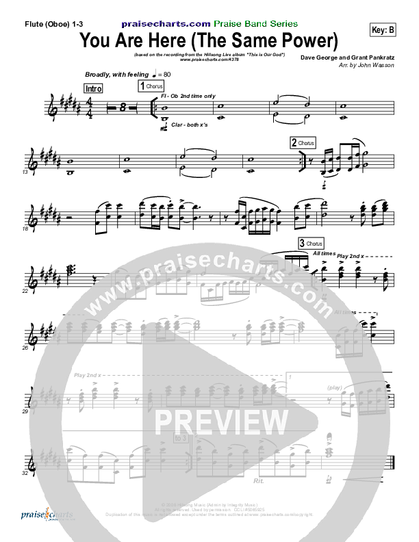 Download the Flute/Oboe sheet music for You Are Here (The Same Power) by Hillsong Worship, from the album This Is Our God. This song was arranged by John Wasson in the key of B, Bb.