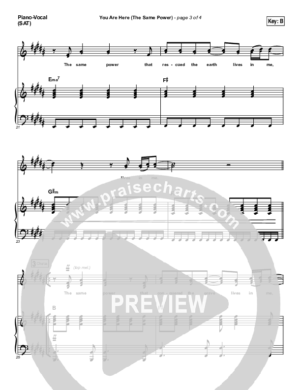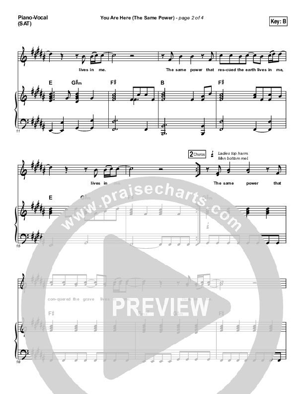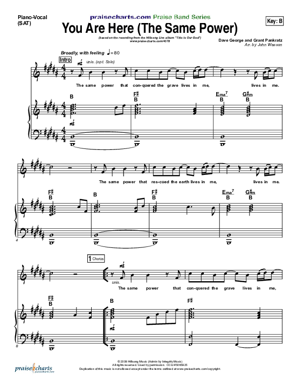 Download the sheet music for You Are Here (The Same Power) by Hillsong Worship, from the album This Is Our God. This song was arranged by John Wasson in the key of B, Bb.
