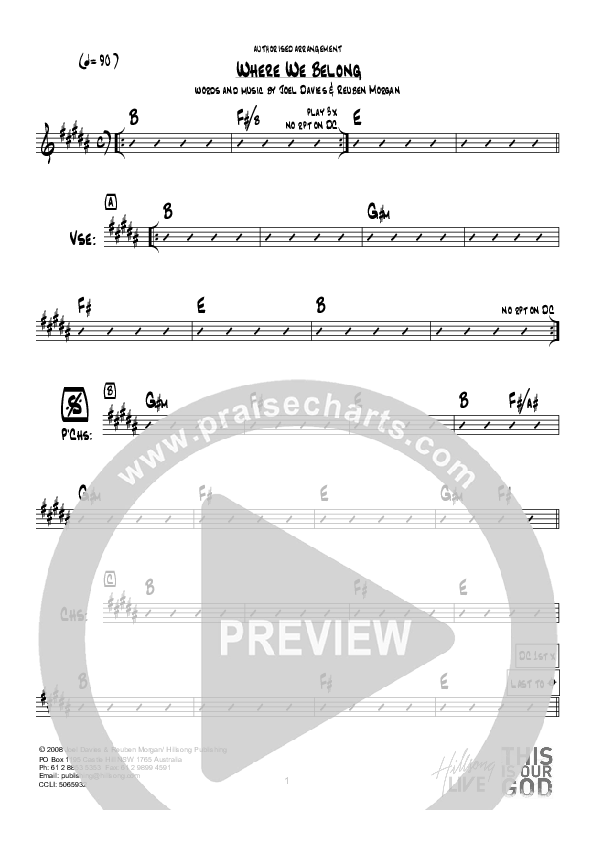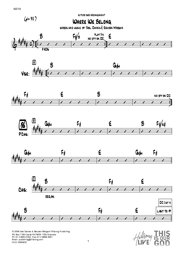 Download the PDF Chord Charts for Where We Belong (Instrumental) by Hillsong Worship, from the album This Is Our God. This song was arranged by Hillsong Music in the key of B.