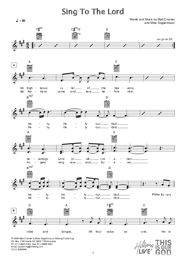 Download the Orchestration for Sing To The Lord (Instrumental) by Hillsong Worship, from the album This Is Our God. This song was arranged by Hillsong Music in the key of A.