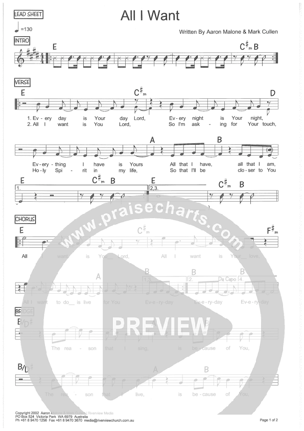 Download the Orchestration for All I Want by Riverview Church, from the album Live2Shine. This song was arranged by Parachute Charts in the key of E.