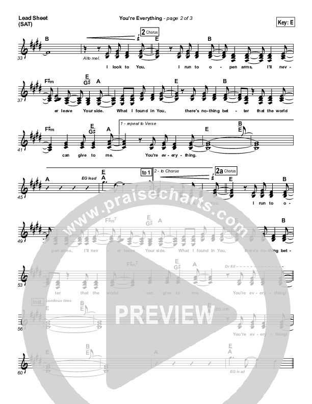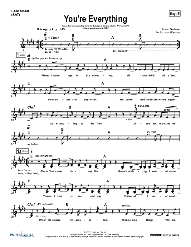Download the sheet music for You're Everything by Equippers Church, from the album Revolution. This song was arranged by John Wasson in the key of E, F.