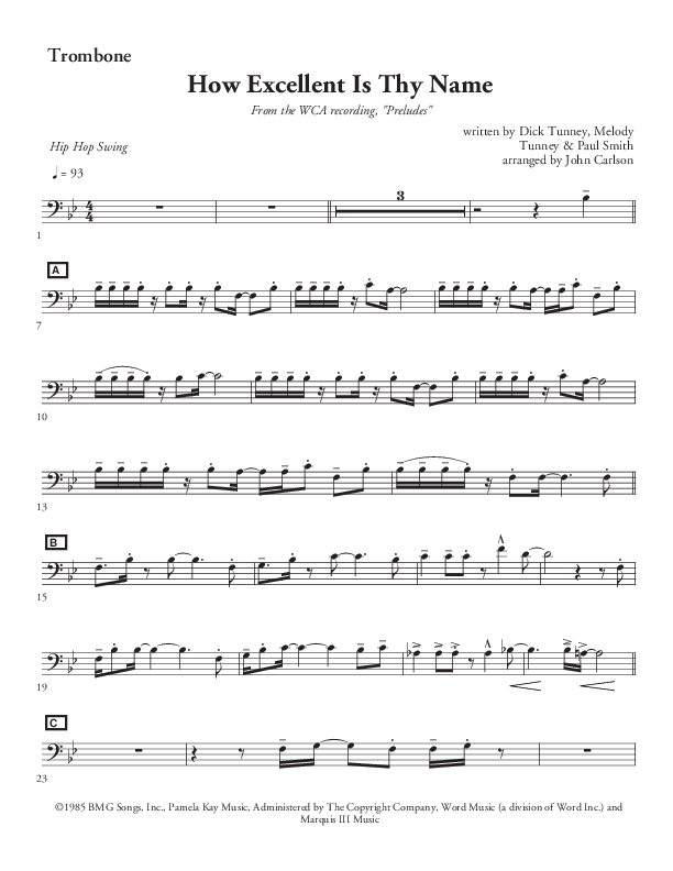 Download the Orchestration for How Excellent Is Thy Name (Instrumental) by John Carlson, from the album Expressions Of Instrumental Worship. This song was arranged by John Carlson in the key of Bb.