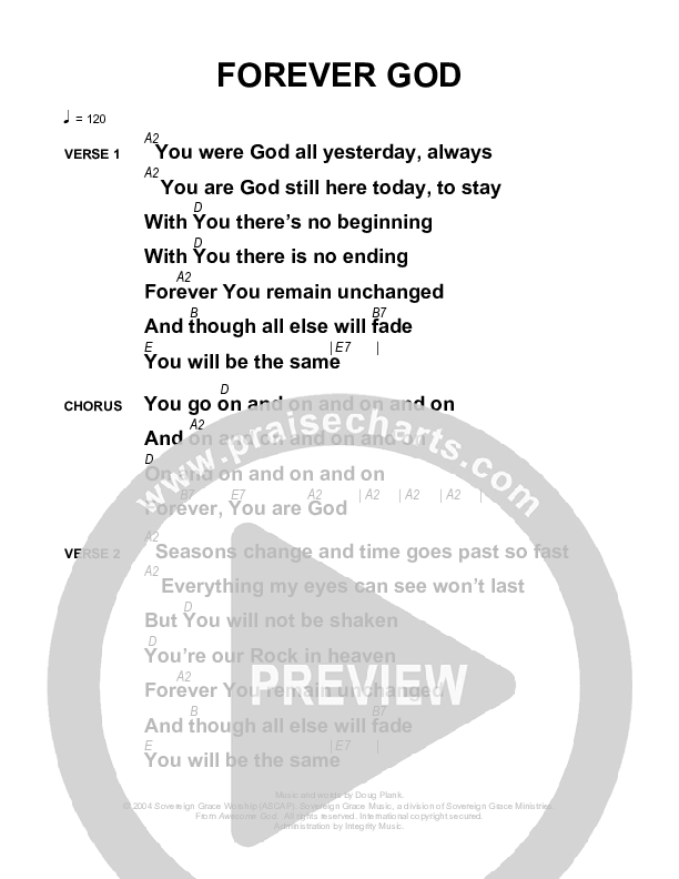 Download the PDF Chord Charts for Forever God by Sovereign Grace, from the album Awesome God.