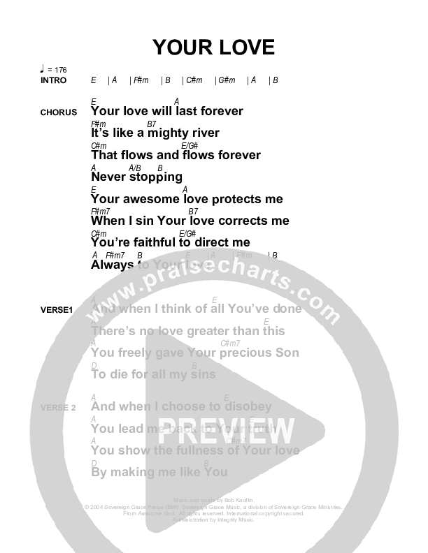 Download the PDF Chord Charts for Your Love by Sovereign Grace, from the album Awesome God.