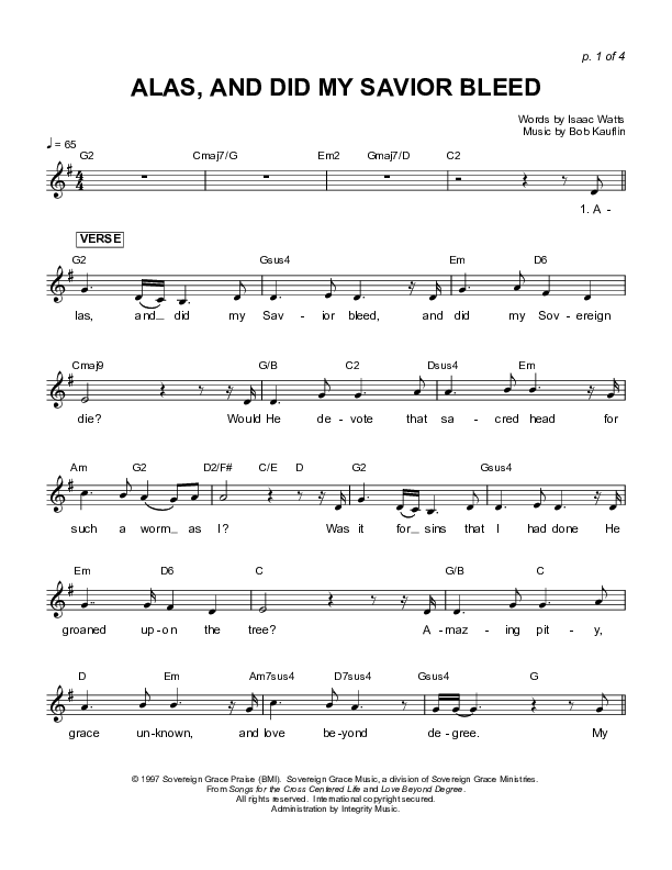 Alas And Did My Savior Bleed (Sovereign Grace)