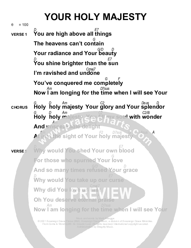 Your Holy Majesty Chords PDF (Sovereign Grace)