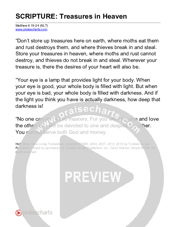 Download the sheet music for Treasures In Heaven (Matthew 6) by Scripture, from the album Readings from the New Living Translation.