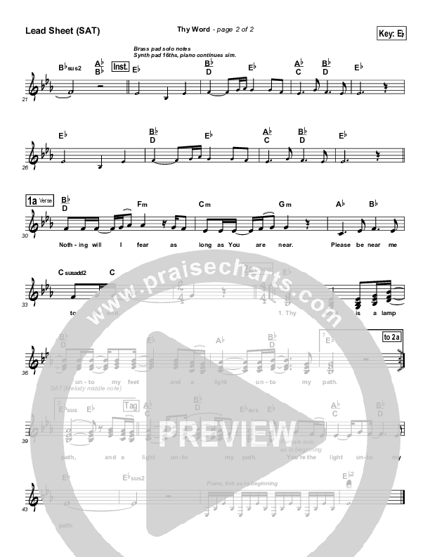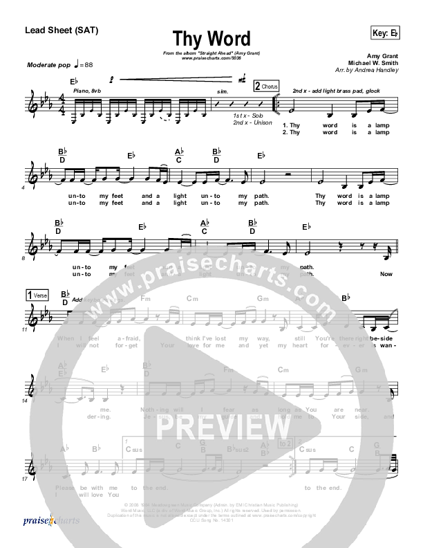 Download the sheet music for Thy Word by Amy Grant, from the album Straight Ahead. This song was arranged by John Wasson / Andrea Handley in the key of Eb, F.