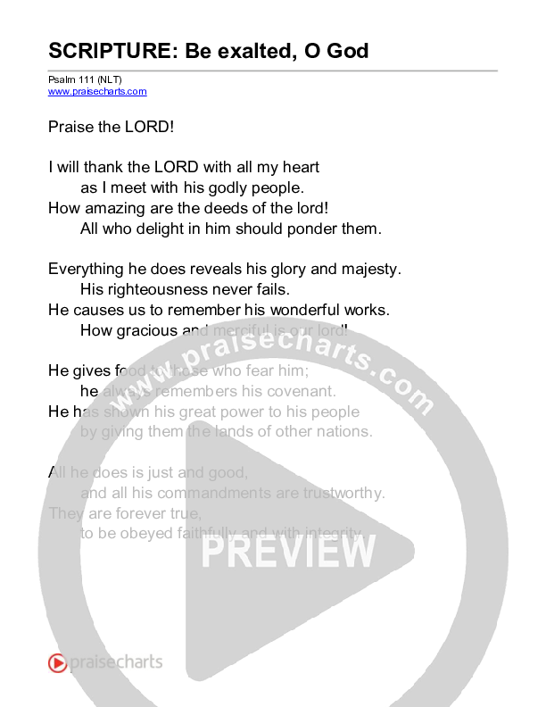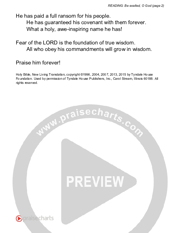 Download the sheet music for Be Exalted, O God (Psalm 111) by Scripture, from the album Readings from the New Living Translation.