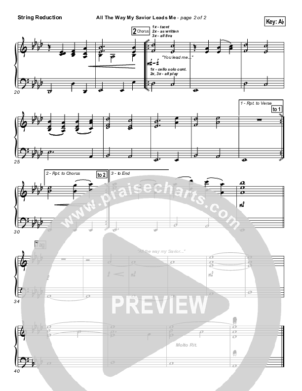 Download the Orchestration string parts for All The Way My Savior Leads Me by Chris Tomlin, from the album Hello Love. This song was arranged by Daniel Galbraith in the key of Ab, G.