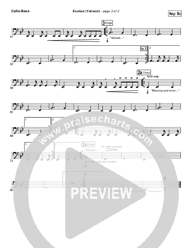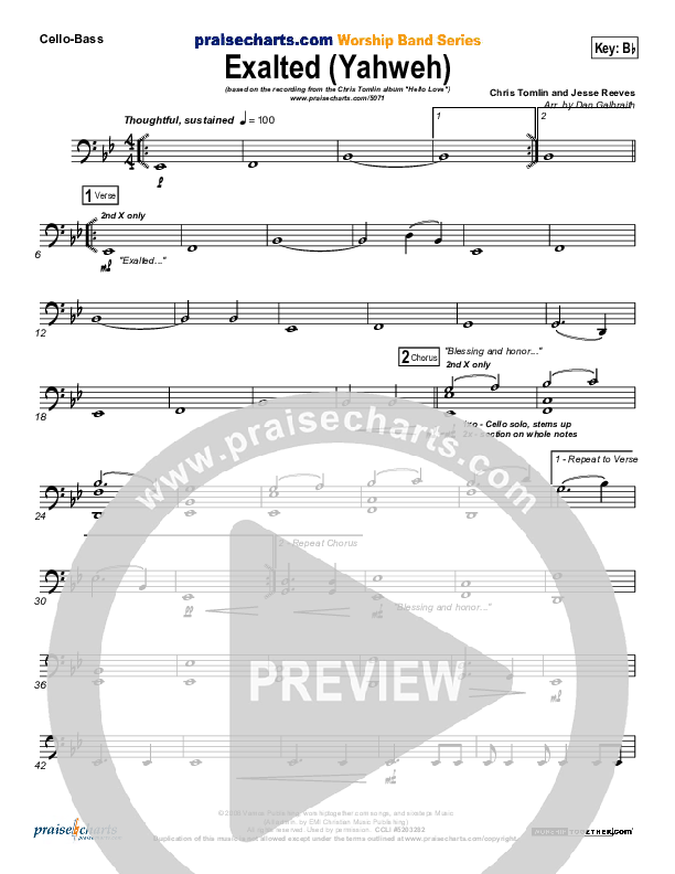 Download the Orchestration for Exalted (Yahweh) by Chris Tomlin, from the album Hello Love. This song was arranged by Daniel Galbraith in the key of Bb, G.