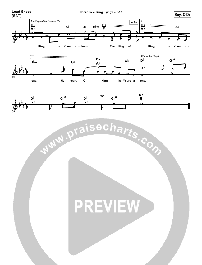 Download the sheet music for There Is A King by Dennis Jernigan, from the album Kingdom Come. This song was arranged by Erik Foster / Brad Henderson in the key of C, D.