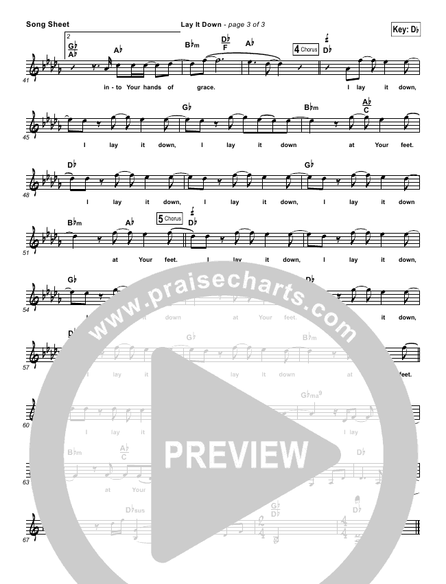 Download the sheet music for Lay It Down by Matt Maher, from the album Empty And Beautiful. This song was arranged by Erik Foster in the key of C, D.