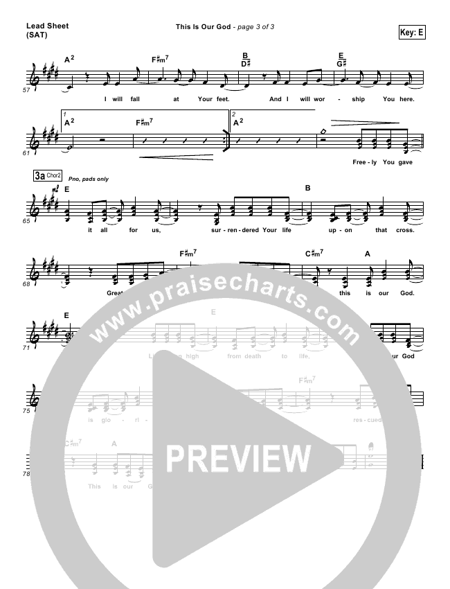 Download the sheet music for This Is Our God by Hillsong Worship, from the album This Is Our God. This song was arranged by Daniel Galbraith in the key of E, F.