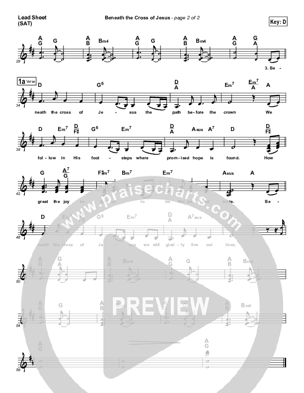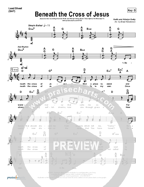 Download the sheet music for Beneath The Cross Of Jesus by Keith & Kristyn Getty, from the album New Irish Hymns 4. This song was arranged by Brad Henderson in the key of D, Eb.