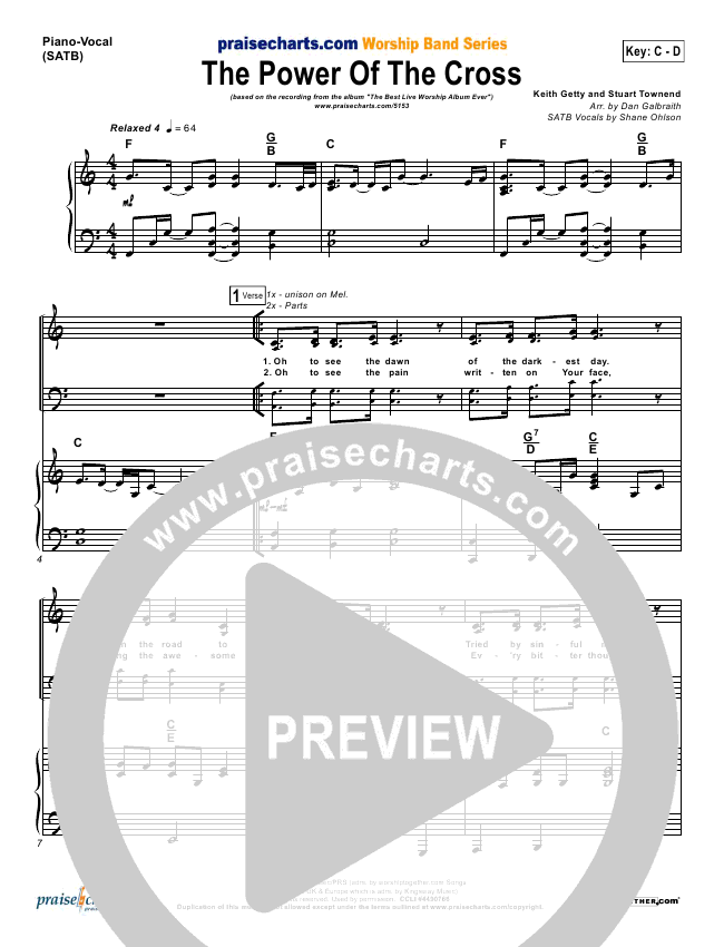Download the sheet music for The Power Of The Cross (Oh To See The Dawn) by Stuart Townend, from the album The Best Live Worship Album Ever. This song was arranged by Daniel Galbraith in the key of Bb, C.