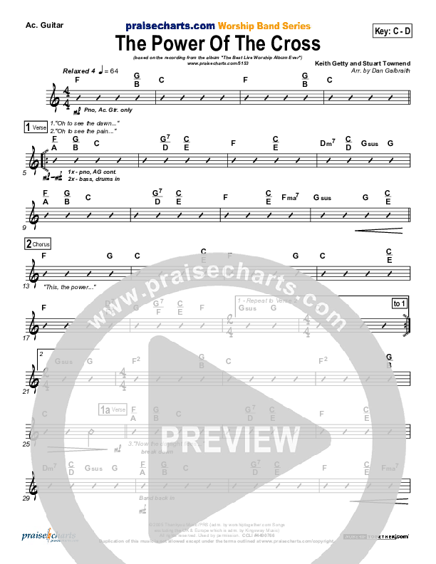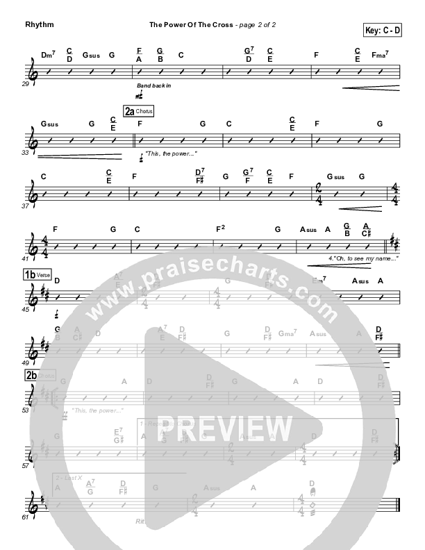 Download the Rhythm Chart for The Power Of The Cross (Oh To See The Dawn) by Stuart Townend, from the album The Best Live Worship Album Ever. This song was arranged by Daniel Galbraith in the key of Bb, C.
