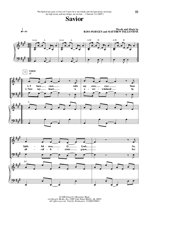 Download the sheet music for Savior by New Life Worship, from the album Counting On God. This song was arranged by Integrity Music in the key of A.