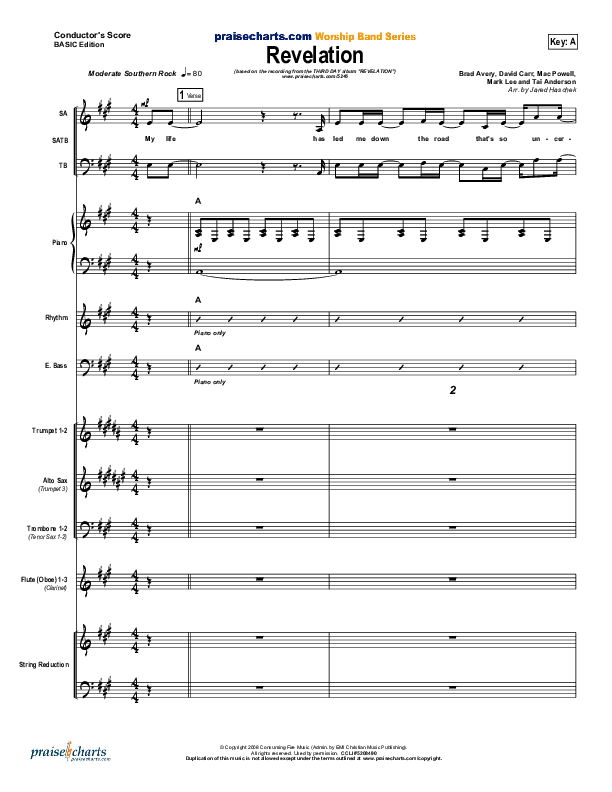 Download the Orchestration for Revelation by Third Day, from the album Revelation. This song was arranged by Jared Haschek in the key of A, G.