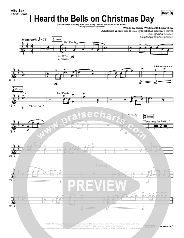Download the Orchestration wind parts for I Heard The Bells On Christmas Day by Casting Crowns, from the album Peace On Earth. This song was arranged by John Wasson in the key of A, Bb.