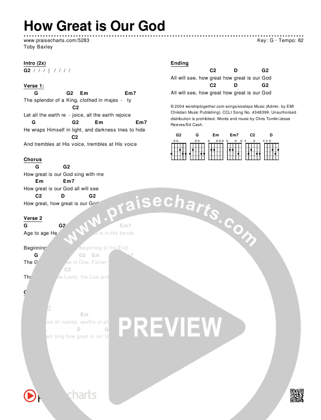 Download the PDF Chord Charts for How Great Is Our God by Toby Baxley, from the album Acoustic Worship: Songs For Small Groups (Vol. 1).