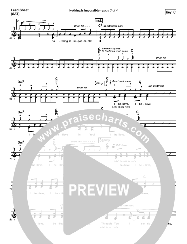 Download the sheet music for Nothing Is Impossible by Planetshakers, from the album Deeper. This song was arranged by Joel Mott in the key of Bb, C.