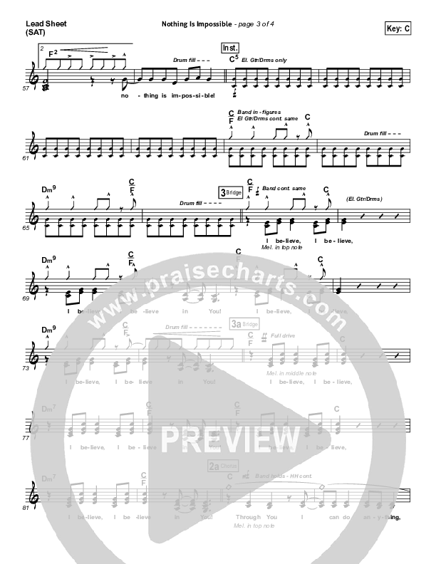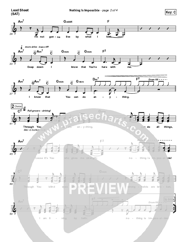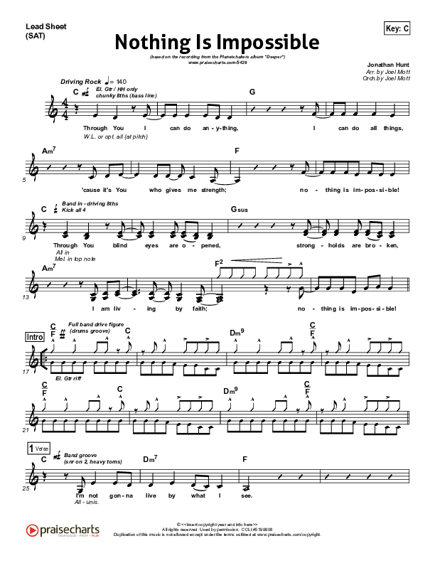 Download the sheet music for Nothing Is Impossible by Planetshakers, from the album Deeper. This song was arranged by Joel Mott in the key of Bb, C.