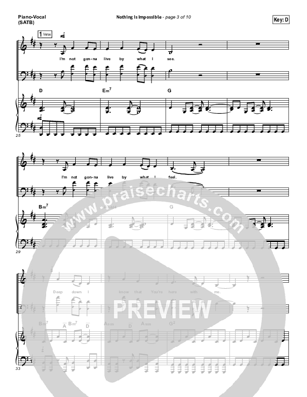 Download the sheet music for Nothing Is Impossible by Planetshakers, from the album Deeper. This song was arranged by Joel Mott in the key of Bb, C.