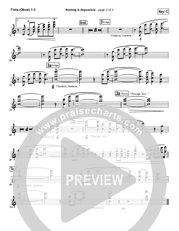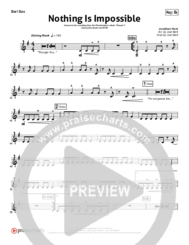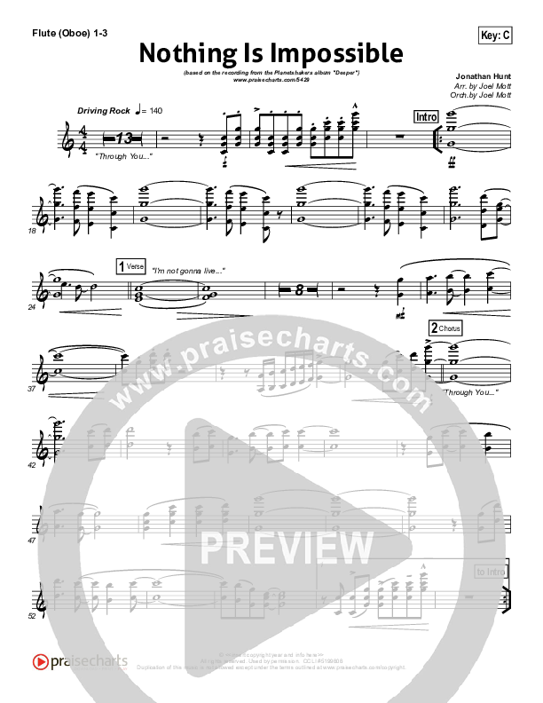 Download the Orchestration wind parts for Nothing Is Impossible by Planetshakers, from the album Deeper. This song was arranged by Joel Mott in the key of Bb, C.