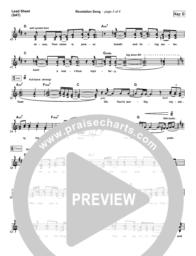 Download the sheet music for Revelation Song by Kari Jobe, from the album Kari Jobe. This song was arranged by Joel Mott / Daniel Galbraith in the key of D, E, Eb.