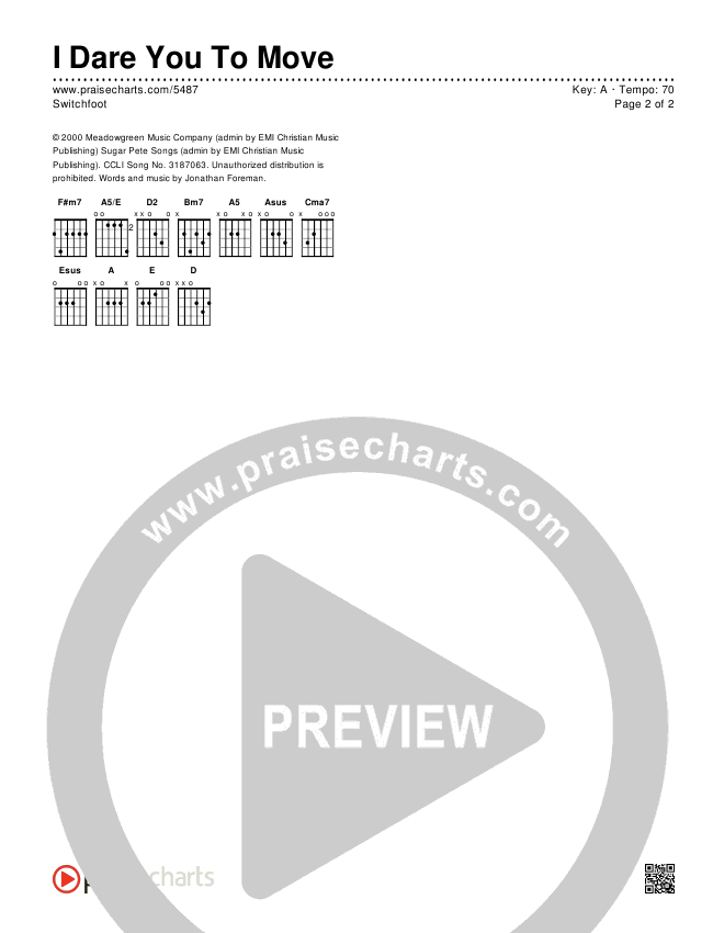 I Dare You To Move Chords PDF (Switchfoot)
