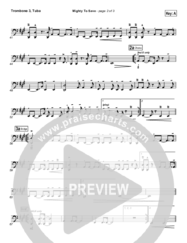 Download the Trombone 3/Tuba sheet music for Mighty To Save (Digital Edit) by Michael W. Smith, from the album A New Hallelujah. This song was arranged by Joel Mott / Jared Haschek in the key of A, G.