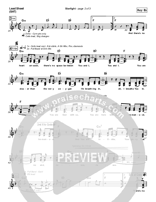 Download the sheet music for Starlight by Bethel Music, from the album Starlight. This song was arranged by Jeff Moore in the key of B, C.