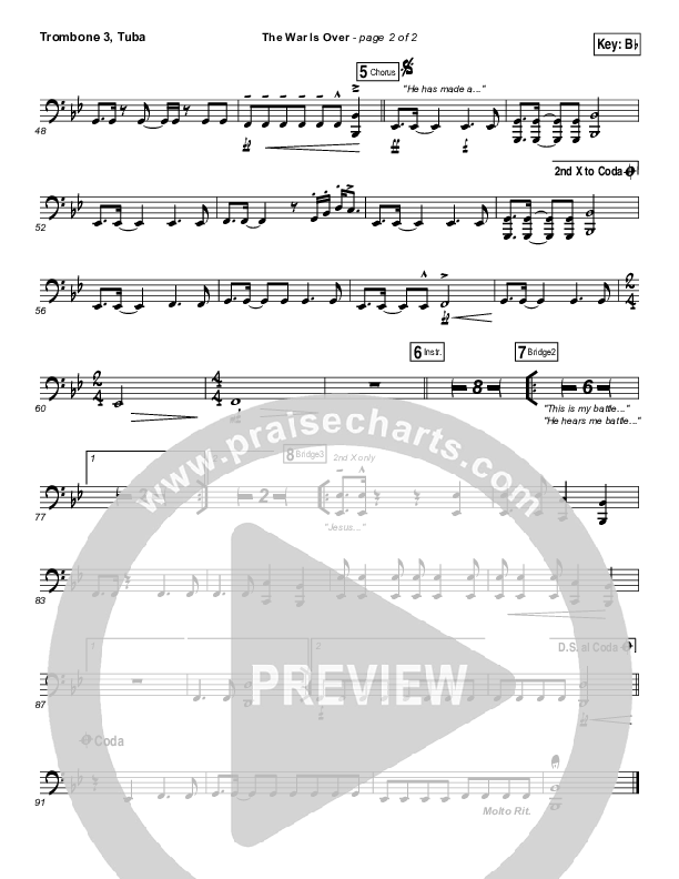 The War Is Over Trombone/Tuba Sheet Music PDF (Bethel Music)