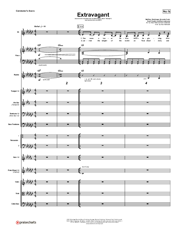 Download the Orchestration for Extravagant by Bethel Music, from the album Starlight. This song was arranged by Grant Wall in the key of G, Gb.