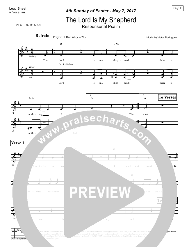 Download the sheet music for The Lord Is My Shepherd (Psalm 23) by Victor Rodriguez, from the album Psalms And Acclamations: Easter 2017.