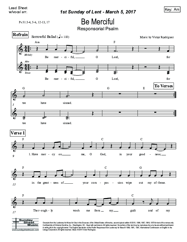 Download the sheet music for Be Merciful (Psalm 51) by Victor Rodriguez, from the album Psalms And Acclamations: Easter 2017.